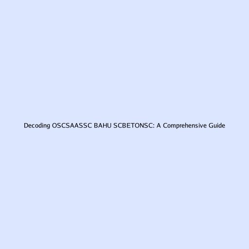 Decoding OSCSAASSC BAHU SCBETONSC: A Comprehensive Guide